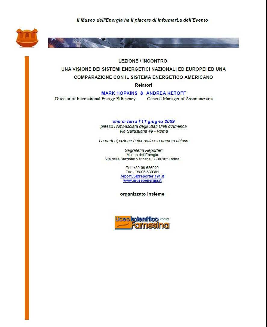 [11-06-2009] Una visione dei sistemi energetici nazionali ed europei e una comparazione con il sistema energetico americano” - Lezione Ambasciata Americana - Parte 1°