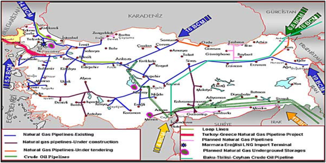 Fig. 1 Gasdotti e oleodotti dello snodo energetico turco