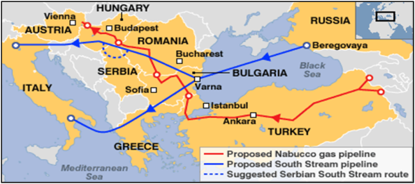 In questa importante partita tra Europa e Russia, la Turchia si è trovata a poter ricoprire il ruolo di “ago della bilancia”, poiché concedendo o meno il passaggio nei propri territori ai due gasdotti avrebbe potuto fungere da argine alle ambizioni russe di esercitare un monopolio sulle vie di trasporto o, al contrario, contribuire a mantenere il primato russo nel settore energetico. Davanti a queste due opzioni, però, la Turchia ha mantenuto una posizione piuttosto ambivalente, concedendo da un lato il passaggio nelle proprie acque territoriali al South Stream e dall’altra siglando gli accordi necessari per la realizzazione del Nabucco.
