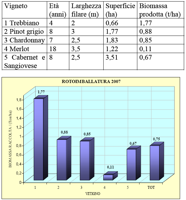 la figura appena vista visualizza le produttività dei vigneti; infine la tabella qui di seguito mostra i principali risultati ottenuti nella fase di rotoimballatura.