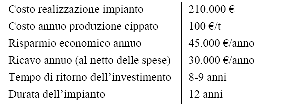 Appare evidente come l’ottimizzazione di alcune fasi della filiera energetica, riducendo il costo di produzione della BIOMASSA, ridurrebbe sensibilmente il tempo di ritorno dell’investimento.
