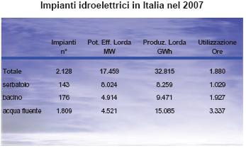 Gli impianti idroelettrici si suddividono in impianti a serbatoio, a bacino oppure ad acqua fluente.