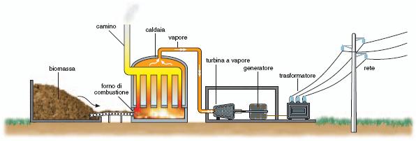 Le centrali termoelettriche alimentate da biomasse solide o liquide effettuano la conversione dell’energia termica, contenuta nel combustibile BIOMASSA, in energia meccanica e successivamente in energia elettrica.