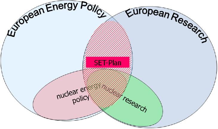 All’inizio del 2007 la Commissione Europea ha proposto una nuova policy energetica per l’Europa che, attraverso un pacchetto completo di differenti misure, permetta di raggiungere una serie di obiettivi molto ambiziosi sul contenimento delle emissioni di GAS SERRA e sull’utilizzo delle energie RINNOVABILI, al fine di creare un vero mercato interno dell’energia in grado di offrire alta qualità del servizio a prezzi competitivi, riducendo nel contempo la dipendenza dall’importazione di combustibili ed il consumo complessivo di energia. A tal fine nel novembre del 2007 la Commissione Europea ha proposto – e il Consiglio Europeo ha approvato in primavera 2008 – un cosiddetto "European Strategic Energy Technology Plan" (SET-Plan), ovvero un vasto piano teso a dotare l’Europa di un nuovo programma di ricerca nel campo energetico, incluso il nucleare da fissione (vedi figura sottostante).