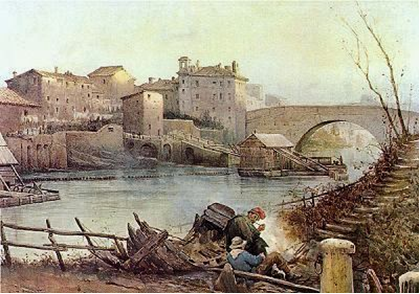 Così nacquero i mulini sul Tevere che vi restarono fino al 1870, quando furono costruiti i muraglioni.