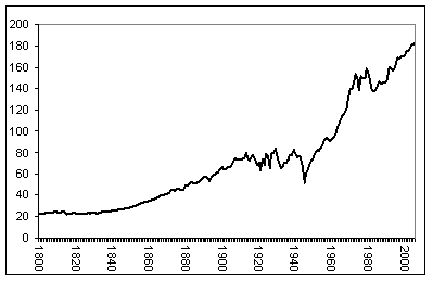 - aumento del prodotto pro capite: da circa 1.000 dollari interna-zionali del 1990 all’inizio dell’Ottocento a 16.000 nel 2000, con un aumento di circa 16 volte1;