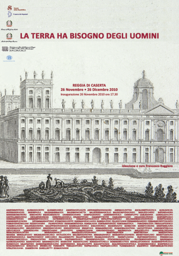 Nell'intento di voler contribuire a una profonda valorizzazione della ricerca connessa ai fermenti artistici nelle Accademie di Belle Arti d’Italia, nell'ambito delle grandi manifestazioni dedicate all'Arte Contemporanea, si inaugura presso le Sale espositive della Reggia di Caserta la Seconda Edizione della Mostra Collettiva dal titolo LA TERRA HA BISOGNO DEGLI UOMINI realizzata con gli Artisti delle Accademie di Belle Arti d’Italia.