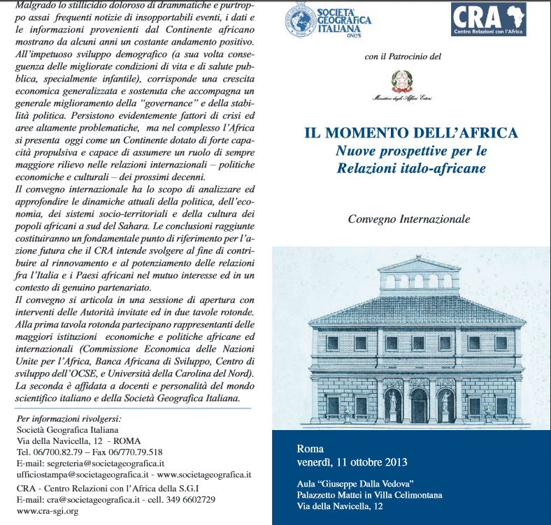 IL MOMENTO DELL'AFRICA: nuove prospettive per le relazioni italo - africane 11 Ottobre 2013