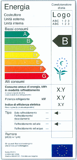 Le Classi di EFFICIENZA ENERGETICA a freddo e in pompa di calore Indicano il consumo elettrico dell’apparecchio. Sono riportate sull’etichetta energetica divenuta, per i condizionatori, obbligatoria dal 2004.